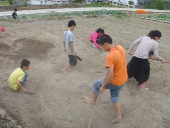 尚未全部完成播種~今天配合藝術與人文課程,以麥田圖形創作的方式授課。