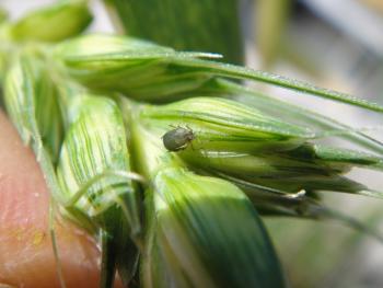 今天觀察到小麥穗有許多黑色蚜蟲,應該是小麥穗開始熟成過程中散發甜美的氣味吧!希望蚜蟲不要太多,以免麥穗無法充實完成!