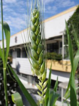 小麥圃中,看見麥穗的灌漿歷程,除了吸引蚜蟲的到來分享外,也看到鳥啄的情形。