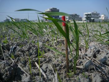這一區雜草沒有那麼嚴重,但是麥草都一樣“黃酸黃酸”,沒有很茂盛、一片綠意...,會不會是當初播種時遇到連日下雨壞了事?