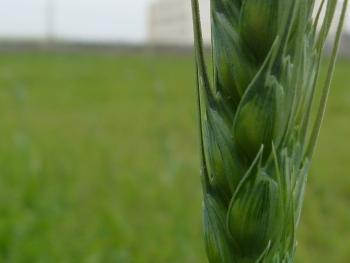 這一區目測小麥存活、長成的,不到一成,在雜草中僅見寥寥一、兩株小麥。這少數的小麥仔細看,有部份也已經抽穗了。